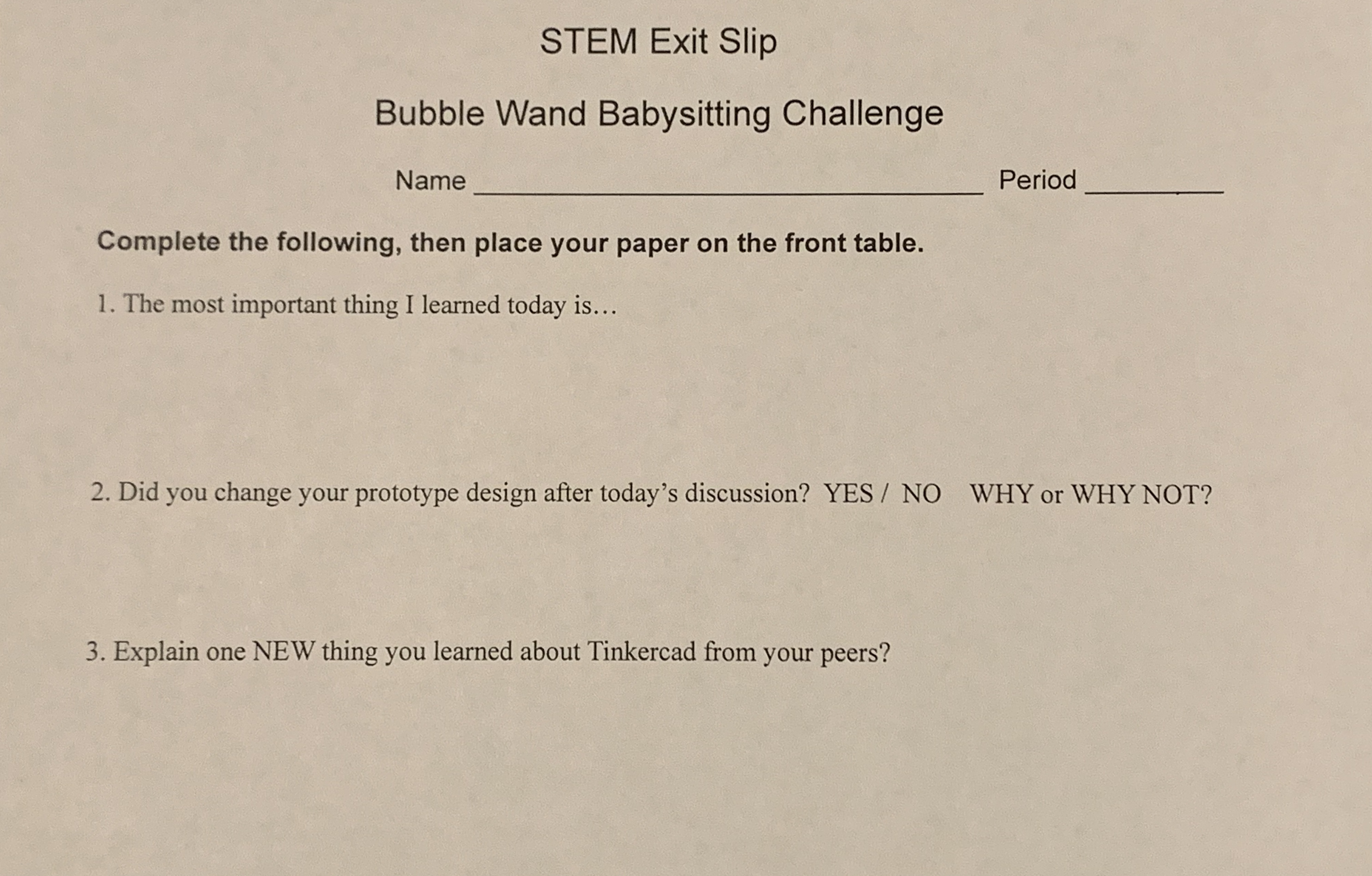 Jackie created a real life problem - in this case, entertaining a young family member while babysitting - and challenged her students to invent, design, and 3D print a functioning bubble wand that fit a list of specific criteria to solve that problem. Download the files to this lesson using the links below: