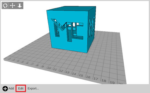 The first thing you are going to want to do is switch into edit mode. This will let you do all sorts of usefull things to your parts, but for now we'll focus on things related to multi material printing.