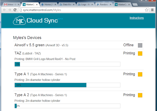 Desktop 3D printing is still a relatively new technology for many of us; like many new technologies, it earns our trust slowly over time. Many a 3D printer owner has made the transition from anxiously hovering over each print from beginning to end to simply pressing the 'Start' button and walking away. Yet still, even as we grant our printers more and more independence, a nagging feeling persists: "How is that print doing?" we wonder, "Is it almost done?". Cloud monitoring - the latest experimental addition to MatterControl - now provides the answers. By enabling cloud monitoring on your 3D printer you can check on its status from anywhere with an internet connection.