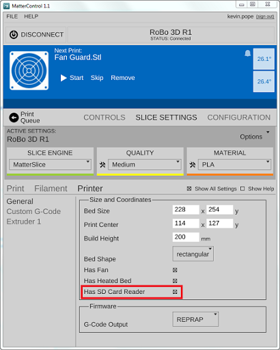 If your printer has an SD Card be sure to enable it in the slice settings and let us know if you have suggestions for improving this great new feature.