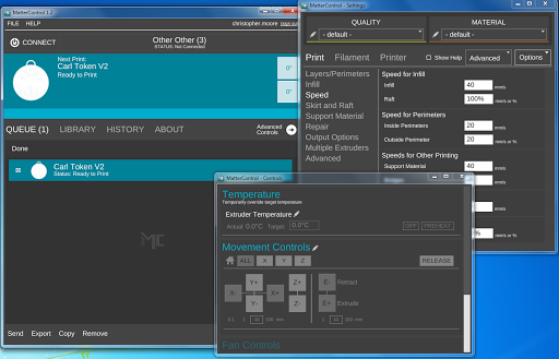 MatterControl now has a 'Pop Out Window' feature that allows you to 'Pop Out' your 'Settings' and 'Controls' as well as the ‘3D View’ and ‘Layer View’ into a separate windows. You have all the same functionality as before, ‘Insert’ a new object onto the print bed, edit, export and view your objects, but now you can move your windows wherever you want. You have the power to create your own layout preferences.
