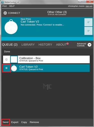 Once the file has been sent from the sending desktop MatterControl, you can find your file in the “Queue” ready for you to view and print.
