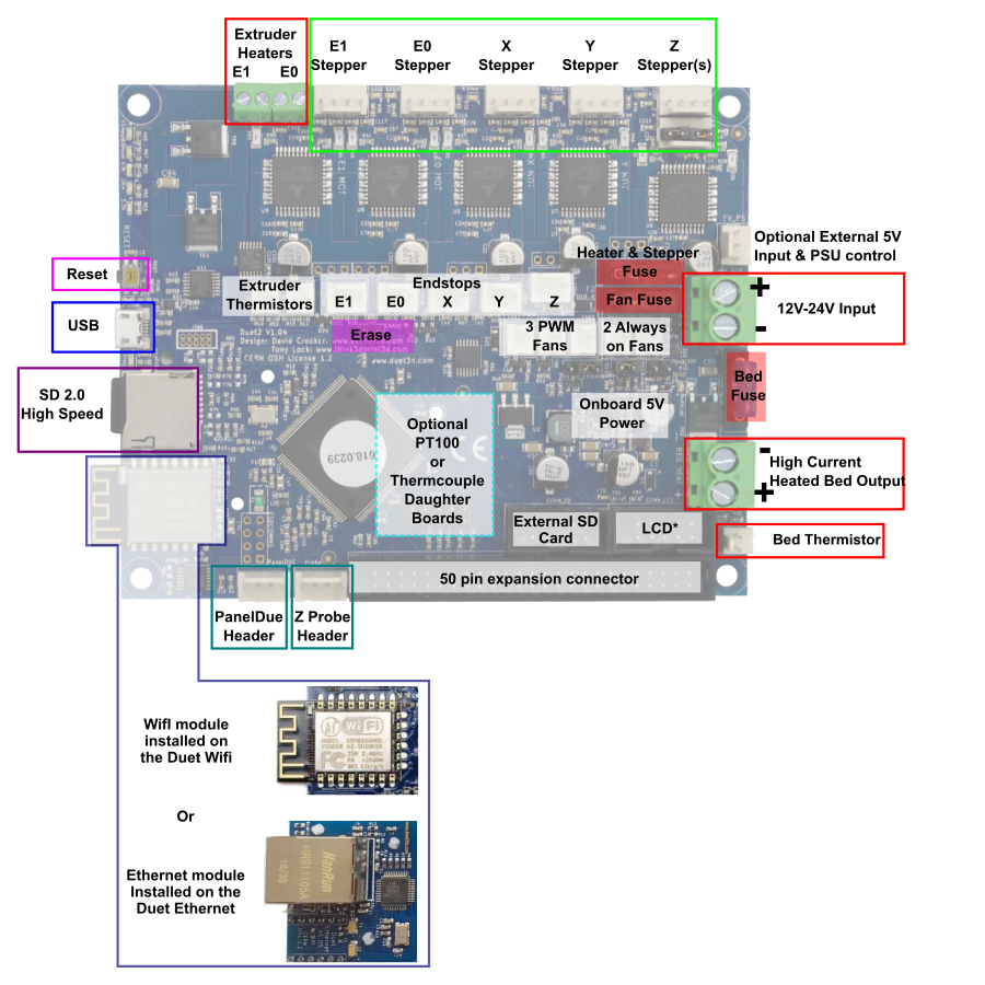 - Duet2 Wifi controller board v1.04b - for more information on PCB history